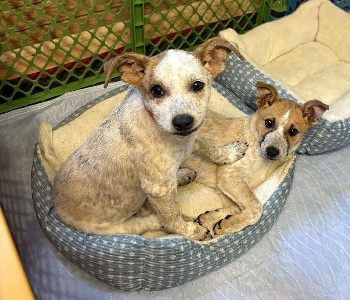 Opal & Gala are still waiting for their forever homes. Just like human sisters they are very different and fight about toys and who gets held first, but they love to play together. Opal is the laid back “bigger” sis, always wanting cuddles and approval. Listens quicker, complains less. Now Gala, she’s the spunky one. Only really wants a cuddle when sissy is on your lap already. Very jealous of someone else taking her spotlight. Smart as a whip and picks up cues very fast. Both dogs haven’t had a potty accident since their first week with me and whine when they need to go out. Sleep all night in the kennel if not disturbed by other pets (mine). I think they’d be great on a farm or acreage where they have lots of room to run and then come in at night to cuddle with their humans.